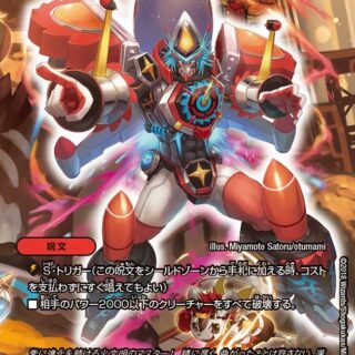 墓地進化V:闇または火のクリーチャーを2体墓地から選び、このクリーチャーをその上に重ねつつ出す。パワード・ブレイカートライ・G・リンク:《龍神ヘヴィ》の右横または《龍神メタル》の左横、またはその間(バトルゾーンに自分の指定ゴッドがあれば、このカードをリンクしてもよい)メテオバーン:このクリーチャーが攻撃する時、このクリーチャーの下に重ねたカードを1枚、墓地に置いてもよい。そうしたら、《龍神ヘヴィ》または《龍神メタル》を1体自分の墓地から出す。