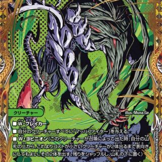 マナゾーンに置く時、このカードはタップして置く。進化V-自分のドラゴン・ゾンビ1体とファイアー・バード1体を重ねた上に置く。W・ブレイカーこのクリーチャーがシールドをブレイクする時、相手はそのシールドを手札に加えるかわりに持ち主の墓地に置く。このクリーチャーがバトルゾーンを離れた時、相手は自分自身の手札をすべて捨てる。