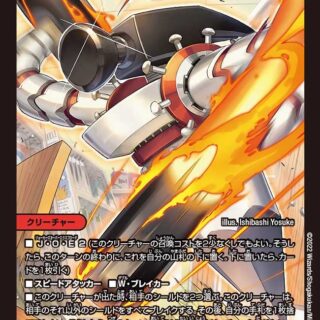 ブロッカー(相手クリーチャーが攻撃する時、このクリーチャーをタップして、その攻撃を阻止してもよい。その後、その相手クリーチャーとバトルする)T・ブレイカー(このクリーチャーはシールドを3枚ブレイクする)