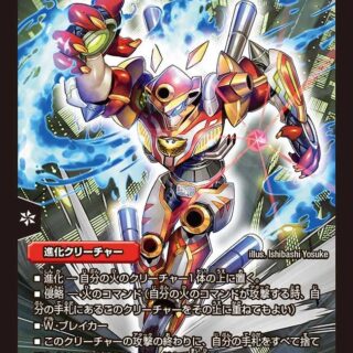 このクリーチャーを召喚する時、自分の手札を2枚捨ててもよい。そうしたら、このクリーチャーの召喚コストを3少なくする。スレイヤーW・ブレイカー相手はカードをマナゾーンに置く時、タップして置く。