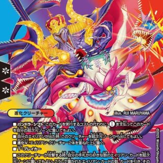Q・ブレイカーこのクリーチャーは攻撃できない。鬼タイム :自分と相手のシールドの数が合計6つ以下なら、真上の▪️能力を無視する。自分のターンのはじめに、自分のシールドを1つ手札に加える。ただし、その「S・トリガー」は使えない。
