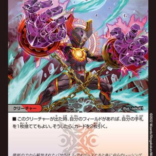 マナゾーンに置く時、このカードはタップして置く。革命チェンジ-光または水のクリーチャー(自分の光または水のクリーチャーが攻撃する時、そのクリーチャーと手札にあるこのクリーチャーを入れ替えてもよい)相手の呪文を唱えるコストは2多くなる。