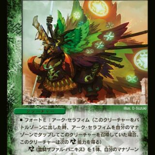 革命チェンジ:火または自然のクリーチャー(自分の火または自然のクリーチャーが攻撃する時、そのクリーチャーと手札にあるこのクリーチャーを入れ替えてもよい)このクリーチャーがバトルゾーンに出た時、そのターン、自分のクリーチャー1体に「スピードアタッカー」を与える。(「スピードアタッカー」を持つクリーチャーは召喚酔いしない)