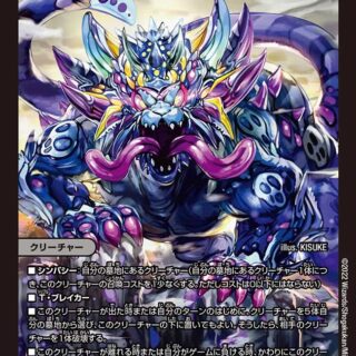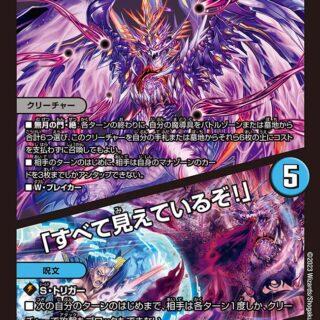 G・ゼロ – バトルゾーンに5文明すべてのカードがそろっていれば、このクリーチャーをコストを支払わずに召喚してもよい。自分のクリーチャーが破壊される時、バトルゾーンに5文明すべてのカードが揃っていれば、そのクリーチャーを墓地に置くかわりに自分の手札に戻す。