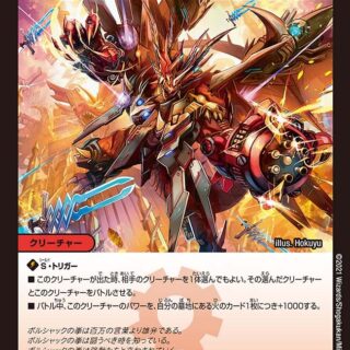 自分のクリーチャーを1体、マナゾーンに置く。デュエマの未開封拡張パックを1つ開けて、相手に見せる。その中から、自分のマナゾーンにあるカードの枚数以下のコストを持つクリーチャーを1体選び、バトルゾーンに出す。残りを自分のコレクションに加える。