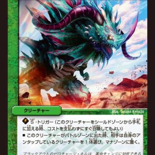 自分の自然のクリーチャーの召喚コストを1少なくしてもよい。ただし、コストは1より少なくならない。龍解:自分のターンのはじめに、バトルゾーンに自分の自然のクリーチャーが2体以上あれば、このドラグハートをクリーチャー側に裏返し、アンタップする。(ゲーム開始時、ドラグハートは自身の超次元ゾーンに置き、バトルゾーンを離れた場合、そこに戻す)
