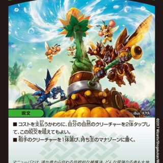 次のうちいずれかひとつを選ぶ。バトルゾーンに自分のエグザイル・クリーチャーがあれば、両方を選んでもよい。 ▼自分の山札の上から1枚目を、マナゾーンに置く。 ▼カードを1枚、自分のマナゾーンから手札に戻してもよい。