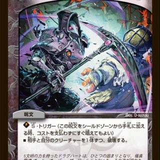 このクリーチャーが破壊された時、相手のクリーチャーを1体選ぶ。このターン、そのクリーチャーのパワーを-4000する。(パワー0以下のクリーチャーは破壊される)