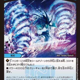 S・トリガー(このクリーチャーをシールドゾーンから手札に加える時、コストを支払わずにすぐ召喚してもよい)このクリーチャーがバトルゾーンに出た時、相手のクリーチャーを1体選ぶ。その選んだクリーチャーとこのクリーチャーをバトルさせる。