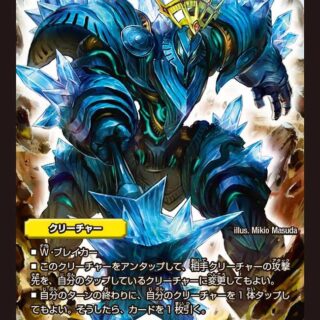 ブロッカー自分のドラゴンが攻撃またはブロックした時、自分の山札の上から1枚目を裏向きのまま、新しいシールドとして自分のシールドゾーンに加えてもよい。W・ブレイカー光以外の呪文によって相手がバトルゾーンにあるクリーチャーを選ぶ時、このクリーチャーを選ぶことはできない。