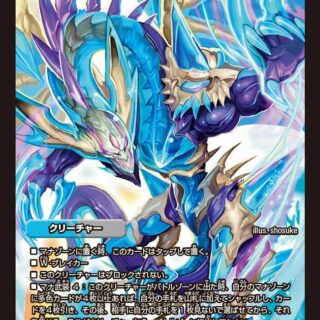 W・ブレイカーこのクリーチャーがバトルゾーンに出た時、自分のクリーチャーを1体、破壊してもよい。そうしたら、カードを2枚引く。このクリーチャーまたは自分の他のクリーチャーが破壊された時、バトルゾーンに自分のD2フィールドがあれば、相手のクリーチャーを1体、破壊する。