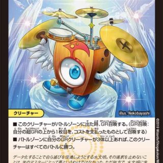 マナゾーンに置く時、このカードはタップして置く。革命チェンジ-火または自然のクリーチャー(自分の火または自然のクリーチャーが攻撃する時、そのクリーチャーと手札にあるこのクリーチャーを入れ替えてもよい)このクリーチャーがバトルゾーンに出た時、相手の「ブロッカー」を持つクリーチャーを1体選び、持ち主のマナゾーンに置いてもよい。