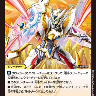 ウルトラ・セイバー:進化クリーチャー(自分の進化クリーチャーがバトルゾーンを離れる時、かわりにこのクリーチャーを破壊してもよい)マナ武装 3―このクリーチャーが破壊される時、自分のマナゾーンに水のカードが3枚以上あれば、カードを1枚引いてもよい。