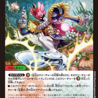 クリーチャーを1体、自分の墓地から手札に戻す。カードを1枚、自分のシールドゾーンから手札に加える。ただし、その「S・トリガー」は使えない。