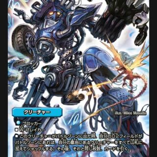 進化-自分のリキッド・ピープル1体の上に置く。このクリーチャーをバトルゾーンに出した時、カードを4枚引いてもよい。そうした場合、自分の手札を2枚、好きな順序で山札の一番下に置く。W・ブレイカー(このクリーチャーはシールドを2枚ブレイクする)