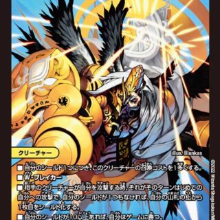 マナゾーンに置く時、このカードはタップして置く。進化V―自分の多色クリーチャー2体の上に置く。W・ブレイカーメテオバーン―自分の進化ではない多色クリーチャーを召喚した時、このクリーチャーの下に重ねたカードを1枚墓地に置いてもよい。そうしたら、自分の山札を見る。その中から、墓地に置いたクリーチャーと同じ名前のクリーチャーを1体、バトルゾーンに出してもよい。その後、山札をシャッフルする。