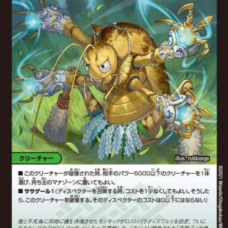 S・トリガー(このクリーチャーをシールドゾーンから手札に加える時、コストを支払わずにすぐ召喚してもよい)このクリーチャーはブロックされない。