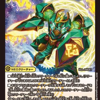 このクリーチャーを召喚する時、自分の墓地にある呪文を好きな数、山札に加えてシャッフルしてもよい。こうして山札に加えた呪文1枚につき、このクリーチャーの召喚コストを1少なくする。ただし、コストは1より少なくならない。T・ブレイカー自分の水の呪文を唱えた時、バトルゾーンにあるカードを1枚選び、持ち主の手札に戻してもよい。