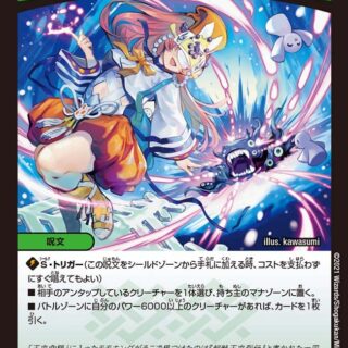 ブロッカー(相手クリーチャーが攻撃する時、このクリーチャーをタップして、その攻撃を阻止してもよい。その後、その相手クリーチャーとバトルする)このクリーチャーをバトルゾーンに出した時、カードを2枚まで引いてもよい。