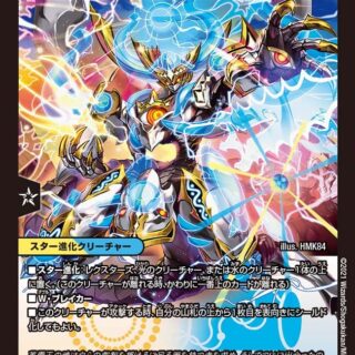 マナ武装 7:このクリーチャーをバトルゾーンに出した時、自分のマナゾーンに火のカードが7枚以上あれば、そのターン、バトルゾーンにある自分のクリーチャーすべてのパワーは+7000され、シールドをさらに1枚ブレイクする。スピードアタッカー(このクリーチャーは召喚酔いしない)W・ブレイカー(このクリーチャーはシールドを2枚ブレイクする)