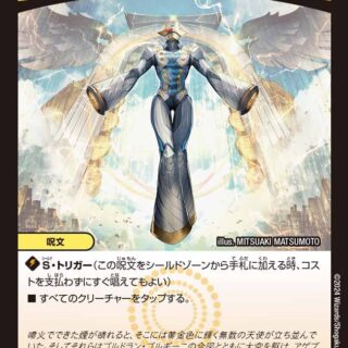 S・トリガー(このクリーチャーをシールドゾーンから手札に加える時、コストを支払わずにすぐ召喚してもよい)このクリーチャーをバトルゾーンに出した時、バトルゾーンにある相手のクリーチャーを1体選び、タップしてもよい。