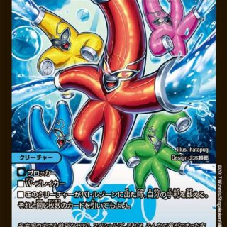 W・ブレイカー(このクリーチャーはシールドを2枚ブレイクする)バトルゾーンにある自分の他のオラクル1体につき、このクリーチャーのパワーは+5000され、シールドをさらに1枚ブレイクする。このクリーチャーが破壊される時、かわりに自分の他のオラクルを1体、破壊してもよい。
