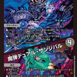 相手のクリーチャーが破壊された時、クリーチャーを1体、自分の墓地から手札に戻してもよい。W・ブレイカー右G・リンクこのクリーチャーがゴッドとリンクした時、自分の山札の上から2枚を墓地に置いてもよい。