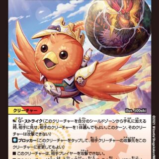 このクリーチャーをバトルゾーンに出した時、このクリーチャーを破壊してもよい。そうした場合、自分の山札の上から1枚目をマナゾーンに置く。 {SG}シールド・ゴー(このクリーチャーが破壊された時、新しいシールドとして自分のシールドゾーンに表向きのまま加える。このクリーチャーが表向きで、シールドゾーンを離れる時、かわりに自分の墓地に置く)