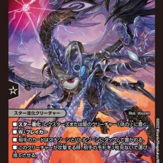 このクリーチャーをバトルゾーンに出した時、相手の手札を1枚見ないで選び、捨てさせる。相手のクリーチャーがバトルゾーンまたは持ち主の手札から墓地に置かれた時、カードを1枚引いてもよい。W・ブレイカードロン・ゴー:このクリーチャーが破壊された時、名前に《魔槍》とあるエグザイル・クリーチャーを1体、自分の手札からバトルゾーンに出してもよい。自分の他の、名前に《魔槍》とあるエグザイル・クリーチャーをバトルゾーンに出すことはできない。
