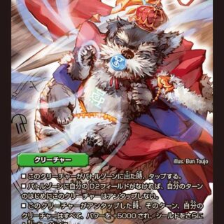 このクリーチャーをバトルゾーンに出した時、自分の山札の上から5枚をすべてのプレイヤーに見せる。その中から好きな数のアウトレイジを手札に加えてもよい。その後、残りを好きな順序で山札の一番下に戻す。W・ブレイカードロン・ゴー:このクリーチャーが破壊された時、名前に《鼓笛》とあるエグザイル・クリーチャーを1体、自分の手札からバトルゾーンに出してもよい。自分の他の、名前に《鼓笛》とあるエグザイル・クリーチャーをバトルゾーンに出すことはできない。