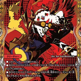 このクリーチャーが、どこからでも墓地に置かれた時、自分のマナゾーンに闇のカードが3枚以上あれば、バトルゾーンにある相手のクリーチャーを1体選ぶ。そのターン、そのクリーチャーのパワーは-2000される。(パワー0以下のクリーチャーは破壊される)W・ブレイカー(このクリーチャーはシールドを2枚ブレイクする)
