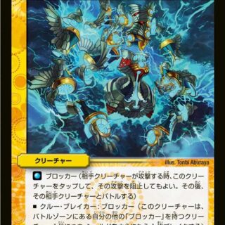 このクリーチャーが攻撃する時、自分の山札を見る。その中からクリーチャーを1体選び、相手に見せてから自分の手札に加えてもよい。その後、山札をシャッフルする。W・ブレイカー(このクリーチャーはシールドを2枚ブレイクする)