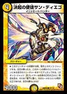 マナゾーンに置く時、このカードはタップして置く。自分のハンターはブロックされない。自分のハンターがバトルに負けて破壊される時、墓地に置くかわりにバトルゾーンにとどまる。相手の呪文の効果または相手のクリーチャーの能力によって、このクリーチャーが自分の手札から捨てられる時、墓地に置くかわりに自分のマナゾーンに置いてもよい。