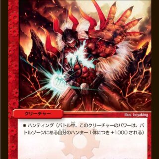 ハイパーエナジー(このクリーチャーを召喚する時、コストが異なる自分のクリーチャーを好きな数タップしてもよい。こうしてタップしたクリーチャー1体につき、このクリーチャーの召喚コストを2少なくする。ただし、コストは0以下にはならない)W・ブレイカー(このクリーチャーはシールドを2つブレイクする)このクリーチャーは、ブロックされない。