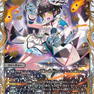 マナ進化V-火のクリーチャーを2体自分のマナゾーンから選び、このクリーチャーをその2体の上に重ねつつバトルゾーンに出す。メテオバーン-このクリーチャーが攻撃する時、このクリーチャーの下にあるカードを1枚墓地に置いてもよい。そうした場合、相手のコスト3以下の「ブロッカー」を持つクリーチャーをすべて破壊する。W・ブレイカー(このクリーチャーはシールドを2枚ブレイクする)