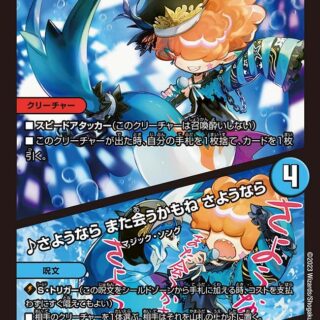 マナゾーンに置く時、このカードはタップして置く。相手のマナゾーンからカードを1枚選び、持ち主の墓地に置く。その後、自分の山札の上から1枚目を、自分のマナゾーンに置く。