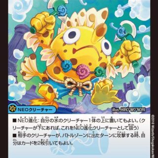 マナゾーンに置く時、このカードはタップして置く。O・ドライブ-光x1と水x1と闇x1(このクリーチャーを召喚する時、自分のマナゾーンでさらに光1枚と水1枚と闇1枚をタップしてもよい。そうした場合、次の能力を得る)このクリーチャーをバトルゾーンに出した時、そのターン、バトルゾーンにある自分の他のクリーチャーは「パワーアタッカー+3000」を得る。