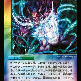 S・トリガー(このクリーチャーをシールドゾーンから手札に加える時、コストを支払わずにすぐ召喚してもよい)このクリーチャーをバトルゾーンに出した時、バトルゾーンにある自分のティラノ・ドレイク1体につき、相手のパワー2000以下のクリーチャーを1体、破壊してもよい。