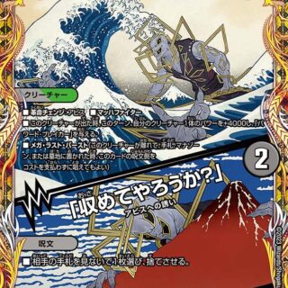 進化-自分のドリームメイト1体の上に置く。自分のドリームメイトの召喚コストを 1少なくしてもよい。ただし、コストは1より小さくならない。自分の他のドリームメイトをバトルゾーンに出した時、カードを1枚引く。W・ブレイカー(このクリーチャーはシールドを2枚ブレイクする)