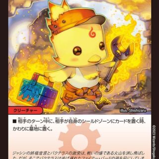 ブロッカースリリング・スリー:フェニックス(このクリーチャーをバトルゾーンに出した時、自分の山札の上から3枚を表向きにする。表向きにしたフェニックス1体につき、次の能力を1回行ってもよい。その後、表向きにしたカードをすべて、好きな順序で山札の一番下に戻す)相手のクリーチャーを1体破壊する。このクリーチャーは攻撃することができない。