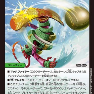 このクリーチャーが攻撃する時、「ブロッカー」を持つクリーチャーを1体破壊する。W・ブレイカー(このクリーチャーはシールドを2枚ブレイクする。)