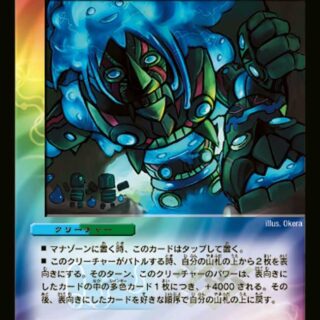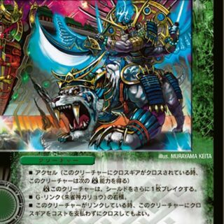 クロスギア:このカードをバトルゾーンに置く。クリーチャーにクロスするには、このカードのコストをもう一度支払う。そのクリーチャーがバトルゾーンを離れても、このカードはバトルゾーンに残る。これをクロスしたクリーチャーが破壊される時、墓地に置くかわりに裏向きにして自分のシールドに加える。このカードがどのクリーチャーにもクロスされていない時、クリーチャーは攻撃1回につきシールドを1枚しかブレイクできない。