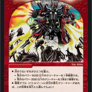クロスギア:このカードをバトルゾーンに置く。クリーチャーにクロスするには、このカードのコストをもう一度支払う。そのクリーチャーがバトルゾーンを離れても、このカードはバトルゾーンに残る。これをクロスしたクリーチャーのパワーは+3000される。このカードがどのクリーチャーにもクロスされていない時、自分のクリーチャーを召喚する時支払うコストは1少なくなる。ただしコストは1より少なくならない。