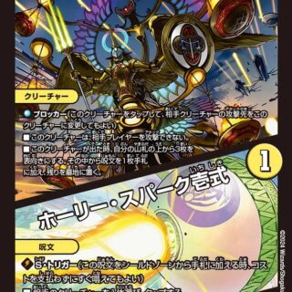 G・ゼロ-バトルゾーンにクロスギアをクロスしているクリーチャーが1体でもあれば、このクリーチャーをコストを支払わずに召喚してもよい。クロスギアをクロスしているクリーチャーすべてのパワーは+1000される。