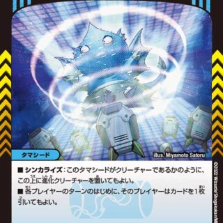 ブロッカー(相手クリーチャーが攻撃する時、このクリーチャーをタップして、その攻撃を阻止してもよい。その後、その相手クリーチャーとバトルする)自分のクロスギアをジェネレートした時、カードを1枚引いてもよい。このクリーチャーは、相手プレイヤーを攻撃できない。