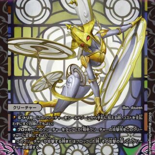 このクリーチャーをバトルゾーンに出した時、自分の墓地に《勇気の玉》が1枚でもあれば、自分の山札の上から1枚目を自分のマナゾーンに置く。