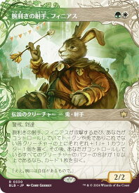 腕利きの射手、フィニアス/Finneas, Ace Archer (緑)(白)伝説のクリーチャー ― 兎(Rabbit)・射手(Archer) BLB, レア警戒、到達腕利きの射手、フィニアスが攻撃するたび、あなたがコントロールしていてトークンや兎(Rabbit)でありこれでない各クリーチャーの上にそれぞれ+1/+1カウンター1個を置く。その後、あなたがコントロールしているすべてのクリーチャーのパワーの合計が10以上であるなら、カード1枚を引く。2/2Illus.オサフネオウジ/O-G Osahune (348/0)