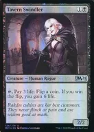酒場の詐取師/Tavern Swindler (さかばのさしゅし) (1)(黒)クリーチャー ― 人間(Human)・ならず者(Rogue) DDM, アンコモン(T),3点のライフを支払う:コイン投げをする。あなたがコイン投げに勝ったなら、あなたは6点のライフを得る。2/2Illus.Cynthia Sheppard (45/88)