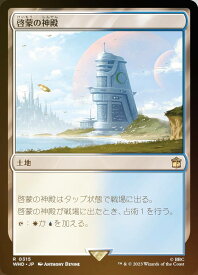 啓蒙の神殿/Temple of Enlightenment (けいもうのしんでん)土地 VOC, レア啓蒙の神殿はタップ状態で戦場に出る。啓蒙の神殿が戦場に出たとき、占術1を行う。(T):(白)か(青)を加える。Illus.Piotr Dura (185/38)