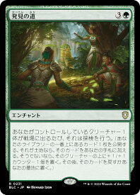 発見の道/Path of Discovery (はっけんのみち) (3)(緑)エンチャント BLC, レアクリーチャーが1体あなたのコントロール下で戦場に出るたび、それは探検を行う。(あなたのライブラリーの一番上のカードを公開する。それが土地であるなら、そのカードをあなたの手札に加える。そうでないなら、このクリーチャーの上に+1/+1カウンターを1個置き、その後、そのカードを戻すかあなたの墓地に置く。)Illus.Howard Lyon (231/0)